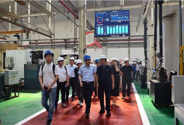 29日上午,考察团来到了合肥合锻智能制造有限公司,企业负责人带领考察团参观了企业展厅、系列产品、工业互联网平台和生产现场。企业负责人向考察团介绍了企业的发展历程以及合锻智能围绕轻量化成型、航空航天制造装备、视觉工业、智能互联、全球化布局等战略方向的积极拓展。参观过程中,大家不时在企业产品前停留,询问设备技术含量、市场开拓情况,对合锻智能产业布局、产品创新频频点赞。