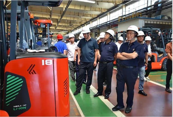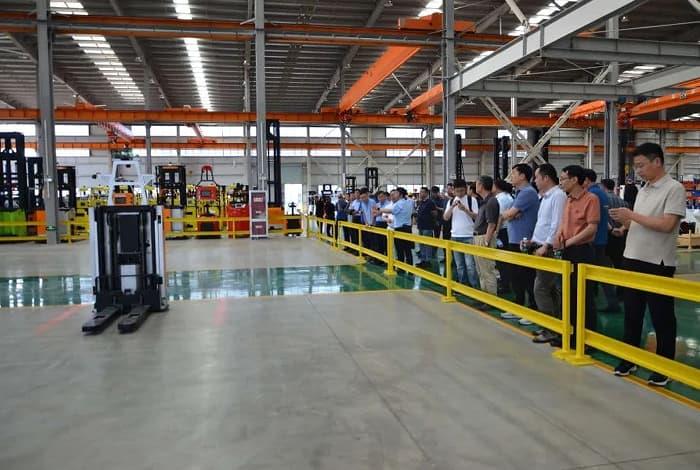 29日下午,考察团走进了安徽合力股份有限公司,受到了公司负责人的热情接待。安徽合力主营业务为工业车辆、工程机械及关键零部件的研发、制造和销售。目前是我国规模最大、产业最完整、综合实力与经济效益最好的工业车辆研发、制造和销售基地,自1991年以来,主要经济指标连续保持全国行业第一,并已跻身世界工业车辆行业七强。考察团首先参观了公司展厅,对公司的发展历史、组织架构、产业布局企业文化建设、发展战略有了全面的了解,随后在企业负责人的陪同下参观了合力叉车的生产现场,通过近距离的参观,大家深刻感受到合力公司通过引入人工智能,打造合力HOS运营体系,实现了管理革命,充分体现了作为知名企业进行市场变革、开展市场化竞争的决心。参观完合力叉车生产基地后,考察团又来到了合力智能物流产业园宇锋智能厂区。近年来,合力深耕智能物流产业,安徽合力通过现金收购股权的方式投资并购宇锋智能,加速推动由单一设备供应商向智能物流集成商的转型升级,不断开辟新领域,创造新模式,培育新的增长点。